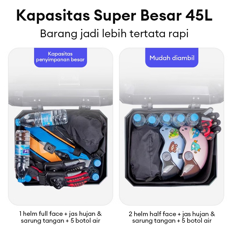 box motor belakang top box 48L kotak penyimpanan dengan lampu strip reflektif suku cadang