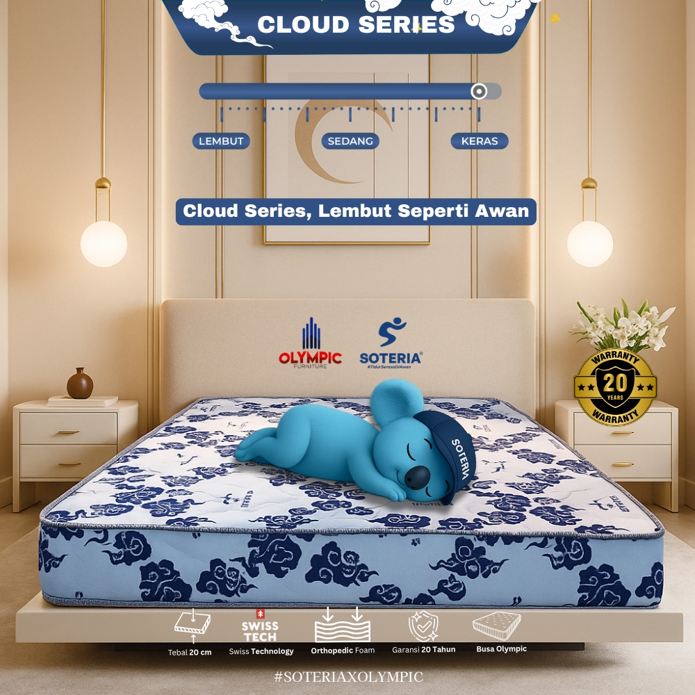 Olympic x Soteria Cloud Series Kasur Roll Extra Empuk Knitting Premium Supportive Matress Roll Kesehatan Swis Technology Tebal 1520 cm