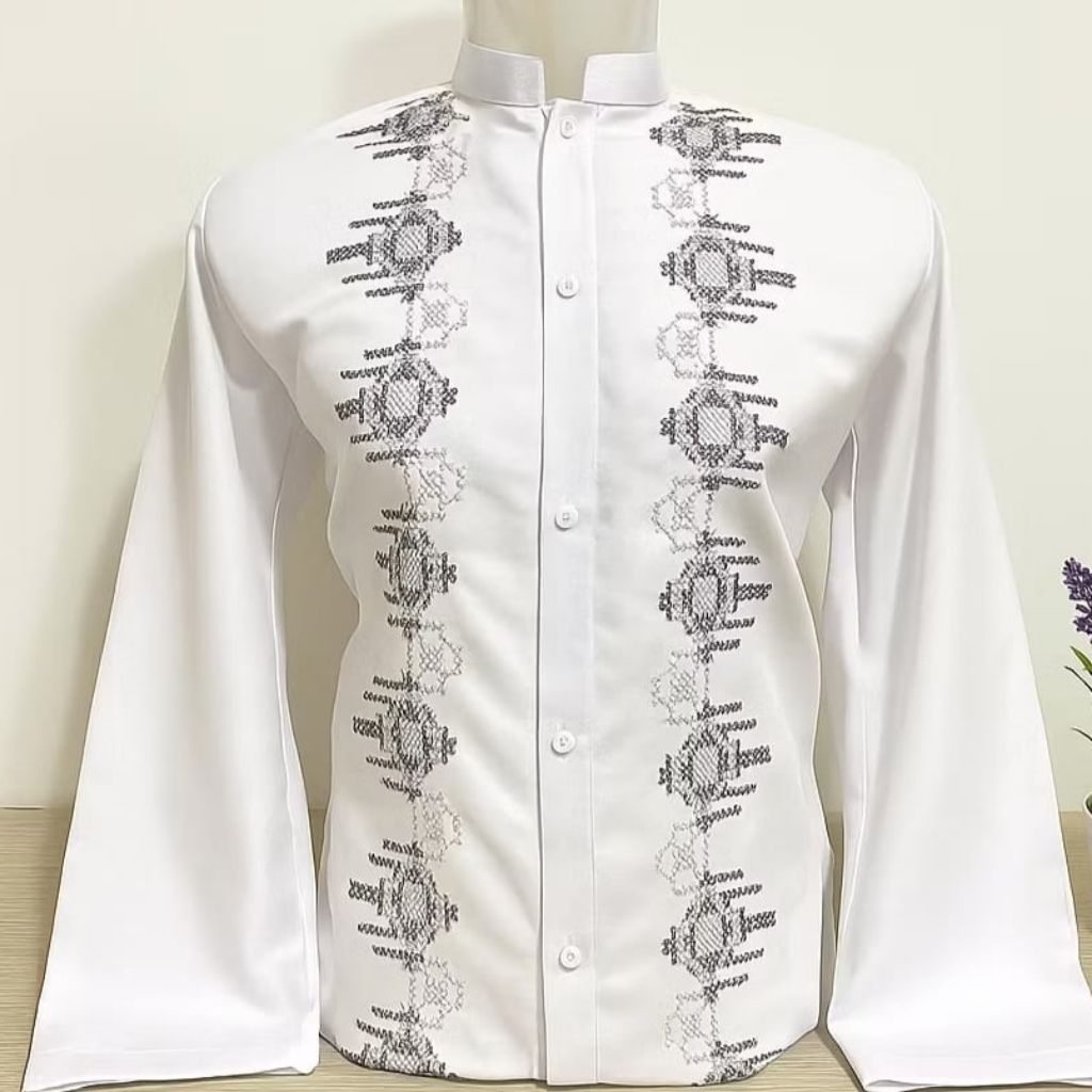 Baju Koko Pria Lengan Panjang Katun Adem Bordir