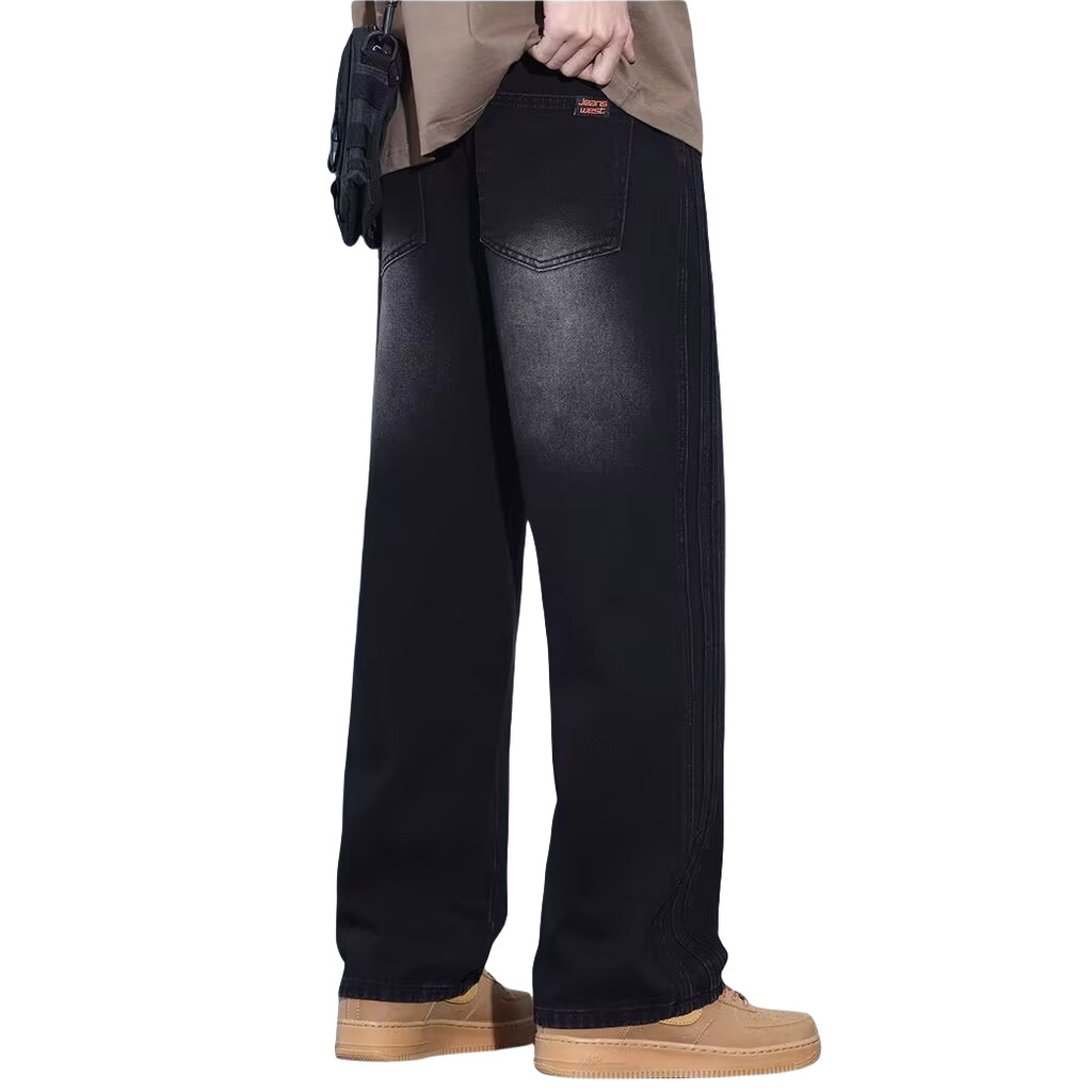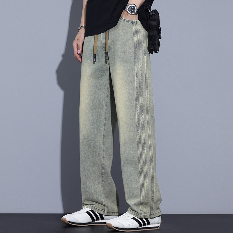 Celana Jeans pria Panjang Longgar Gaya Korea Retro Ukuran Besar Kaki lebar Celana Lurus