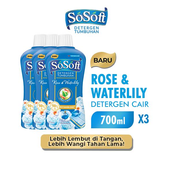 SOSOFT DETERJEN CAIR ROSE WATERLILY BOTOL 700 ML X 3PCS