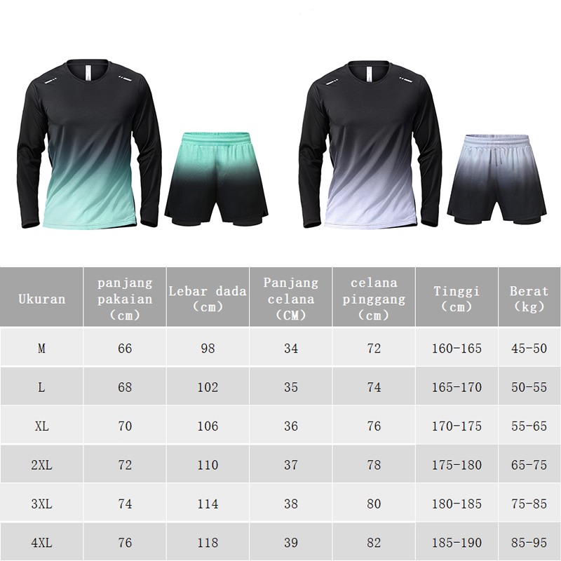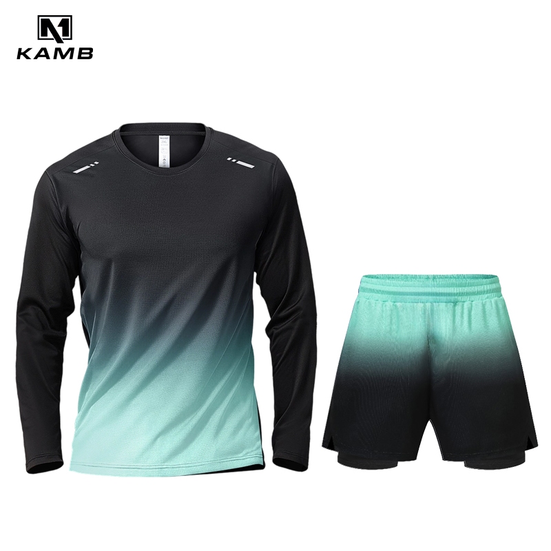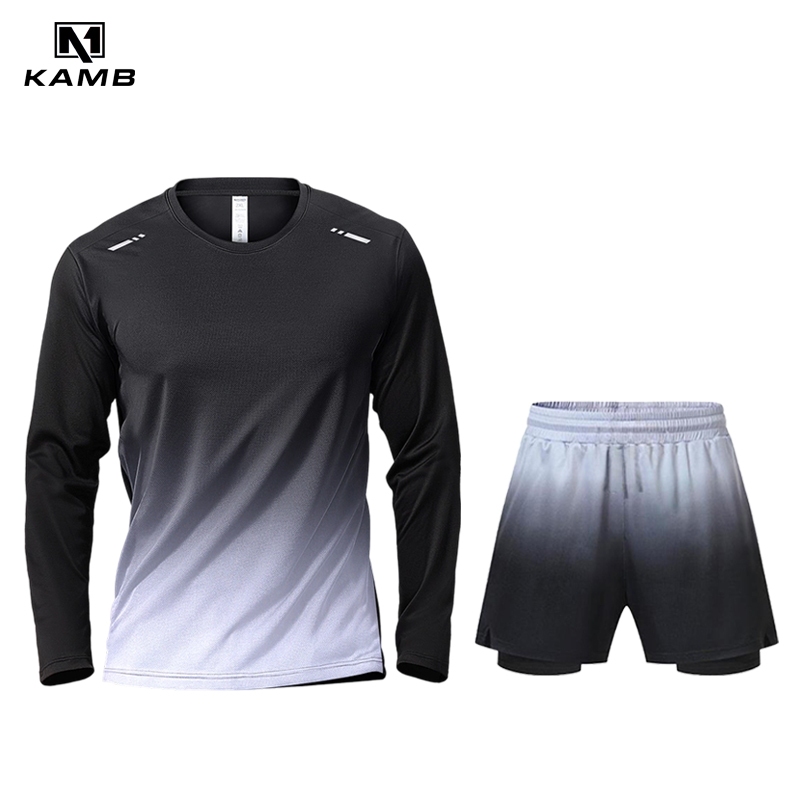 KAMB Setelan Olahraga Pria Anti Bakteri Joging Badminton Lengan Panjang + Celana Pendek
