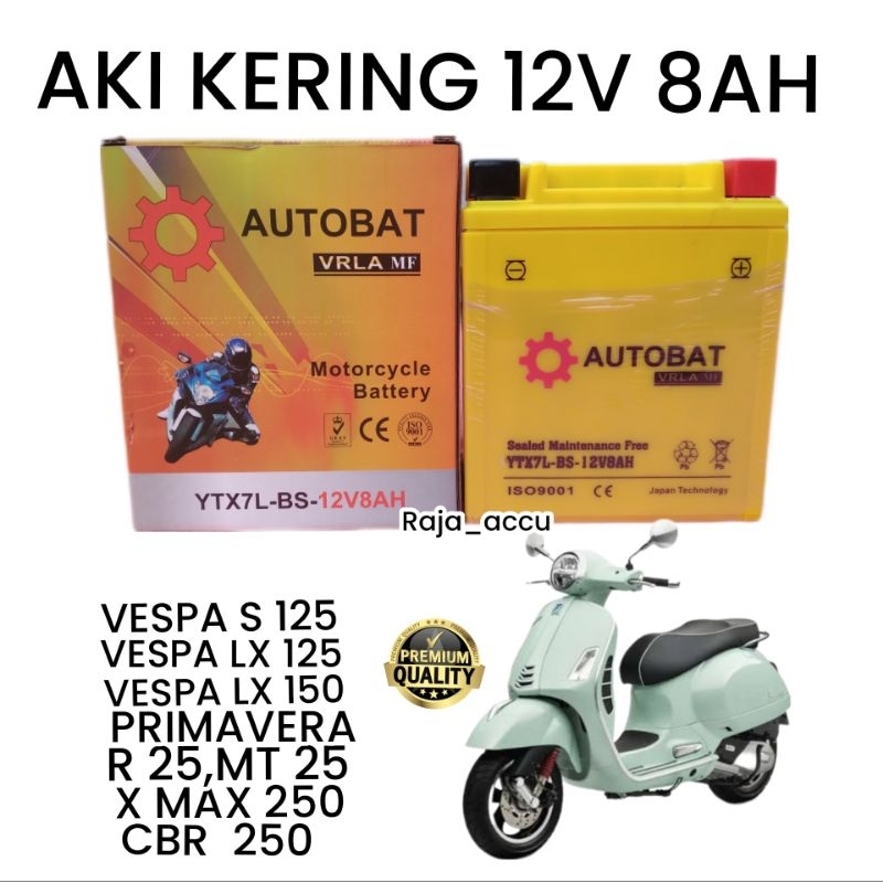 AKI MOTOR VESPA LX150,VESPA LX 125,VESPA S 125,VESPA PRIMAVERA,SPRINT,X MAX, R25, MT25,CBR 250,KLX 250 AUTOBAT YTX7L