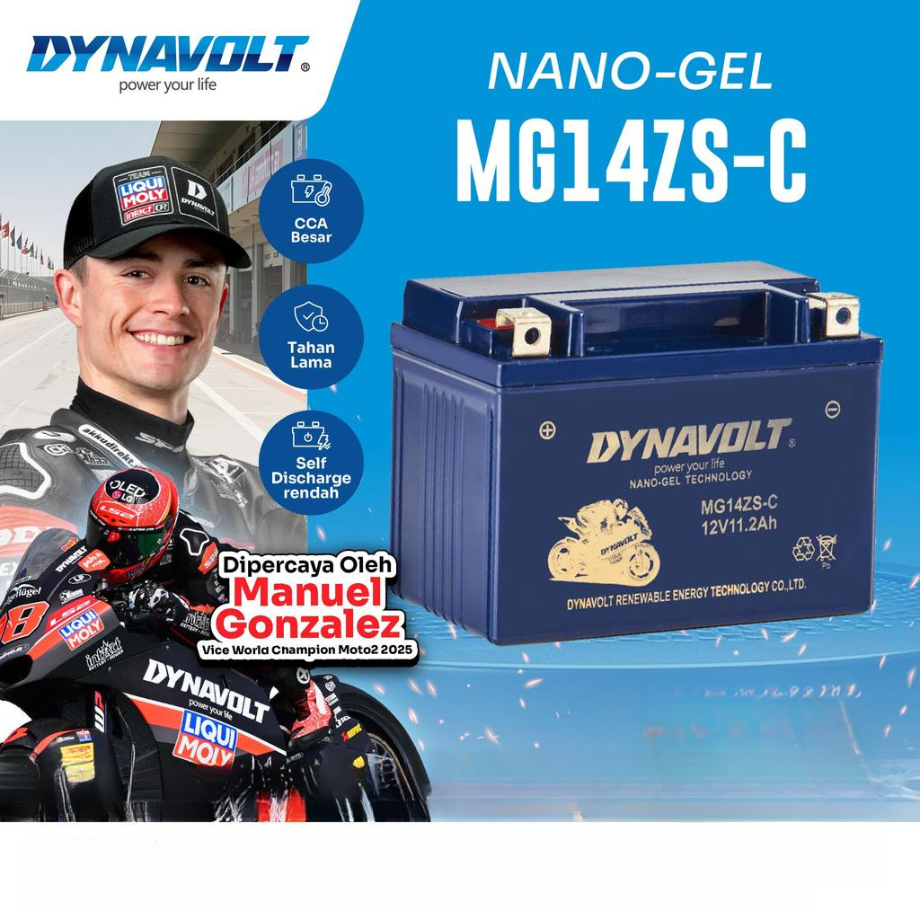 DYNAVOLT Aki Motor KAWASAKI Ninja 250/250FI, ER-6N, Z800, Z1000, dll | Nano-Gel MG14ZS-C | 11.2 AH 400 CCA