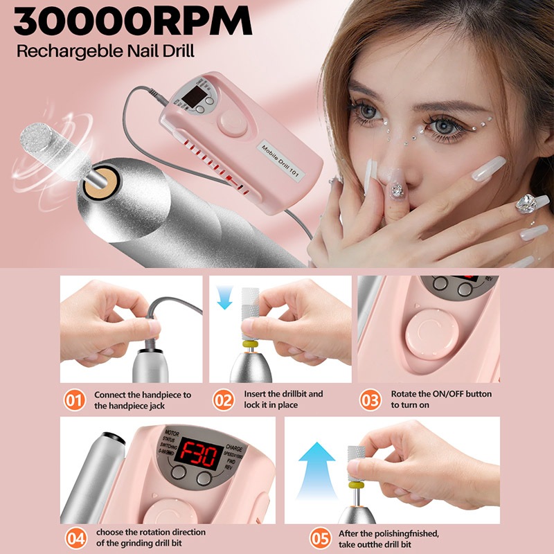 3500mAh & 5 Bonus Head Alat Kikir Kuku Elektrik Portable Rechargeable / Nail Drill Polisher Grinding Untuk Manicure Nail
