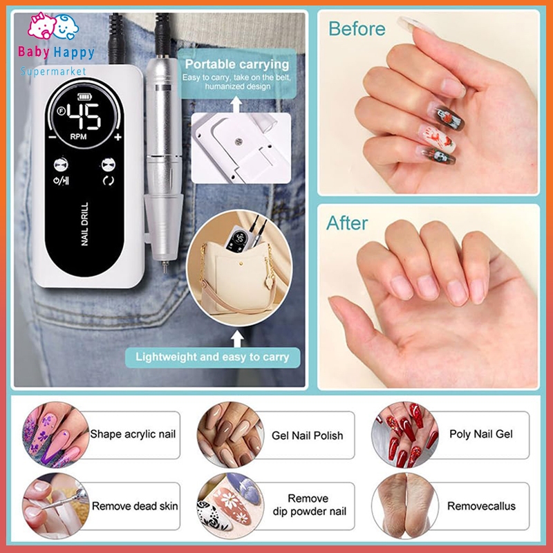 Mesin Bor Kuku Elektrik 45000RPM Kikir Kuku Portabel Isi Ulang Kit Bor Kuku Elektrik DIY