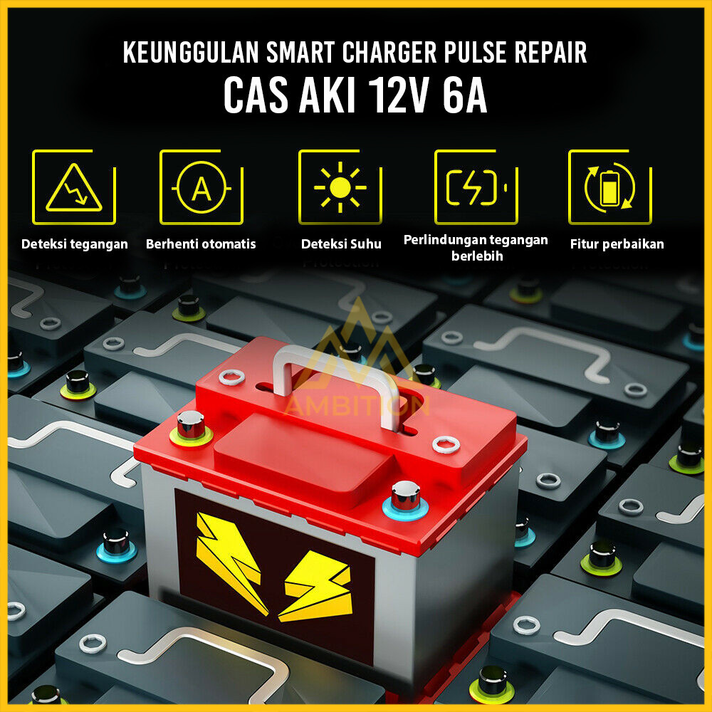12V 6A Cas Aki Mobil Motor Pulse Repair aki Otomatis Power Digital LCD Display