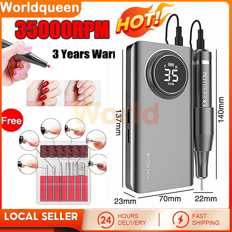 35000RPM Electric Nail Drill Machine 2 IN 1 Alat Kikir Kuku Elektrik Rechargeable Nail Drill Nail Gel Polisher For Manic