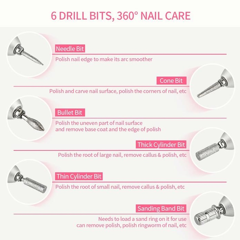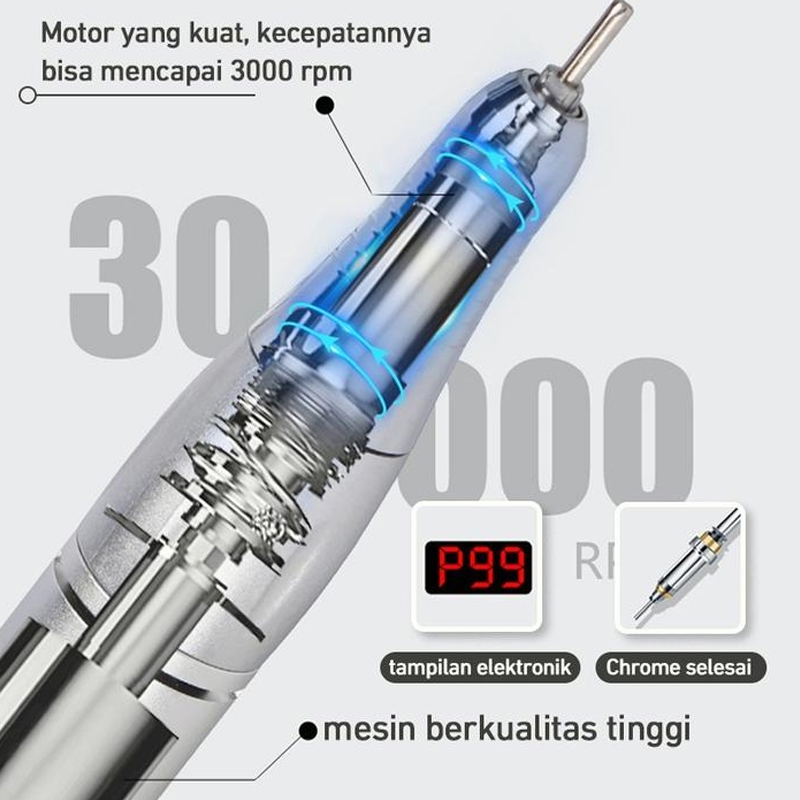 Kikir Kuku Elektrik Bor Kuku Elektrik Layar LCD Isi Ulang 30000 RPM Kikir Kuku Nirkabel Senyap Mesin Pengasah Kuku Alat