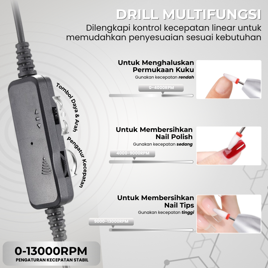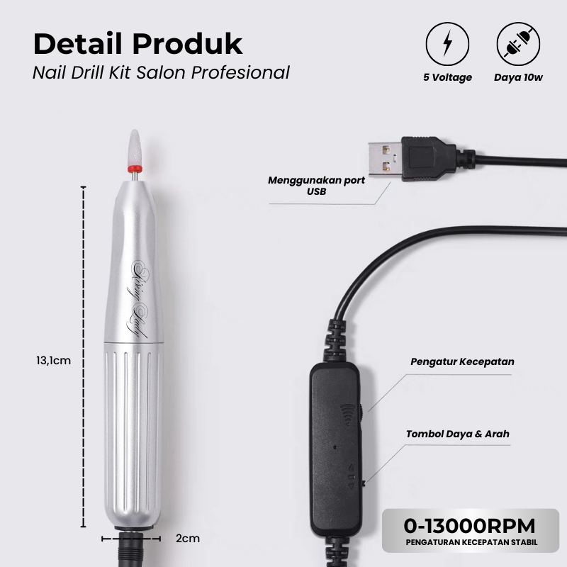 MSY RISING LADY ELECTRIC NAIL DRILL KIT/PORTABLE ELECTRIC FOR SALON PROFESIONAL/ALAT MANICURE PEDICURE DENGAN 13 KEPALA