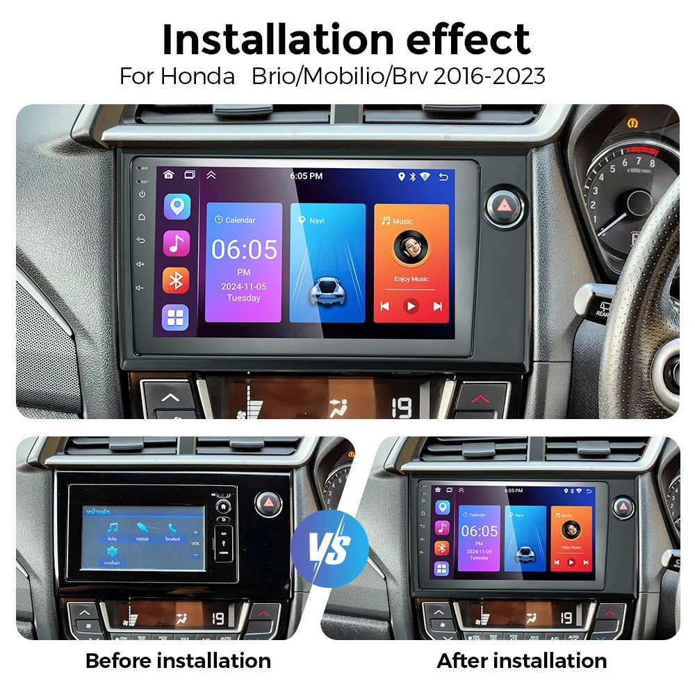 LALAHOO Untuk Brio/Mobilio/Brv 2016-2023 6G+64G Android 13 Head Unit Termasuk Frame/PNP Soket 9 Inch
