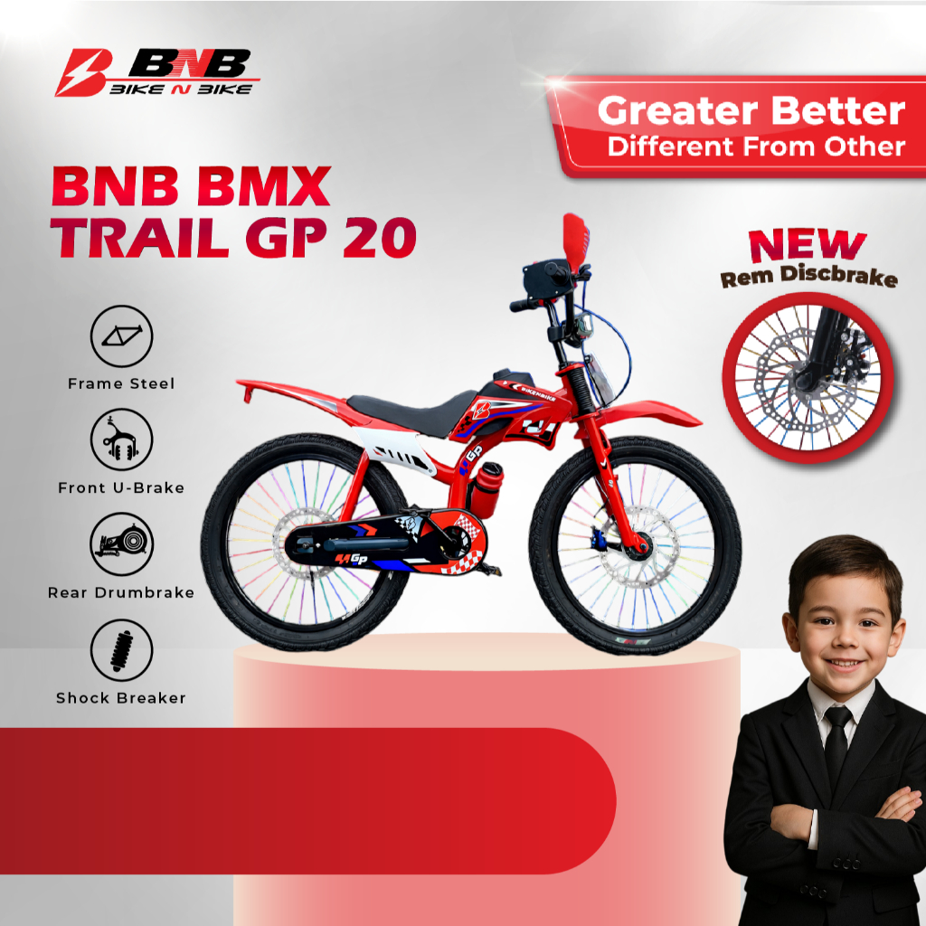 Sepeda Anak Cowo Usia 7 - 12 Tahun Bmx Trail GP Ukuran 20 inch