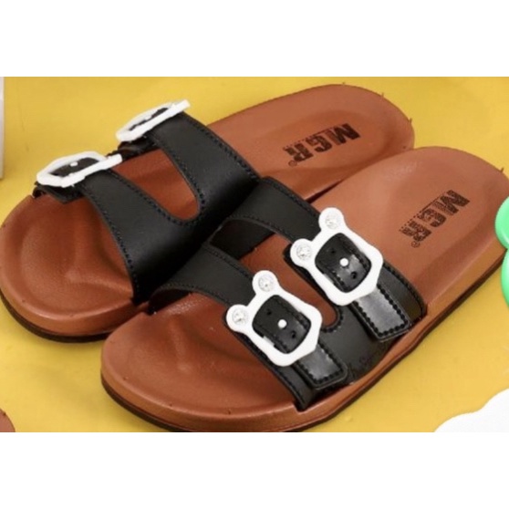 Sandal Slop Jelly Anak Remaja Cewek Cowok Ban 2 Gesper Ber Bear Putih Lucu Cantik Casual Keren Impor MGR Mokaya Balance (1709)/ Size 24-29