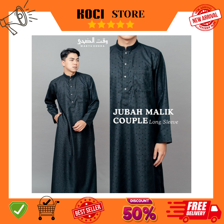 WAKTU DHUHA - Jubah Malik Gamis Slimfit Pria Lengan Panjang Motif Emboss Fashion Muslim Terbaru LEBARAN 2026