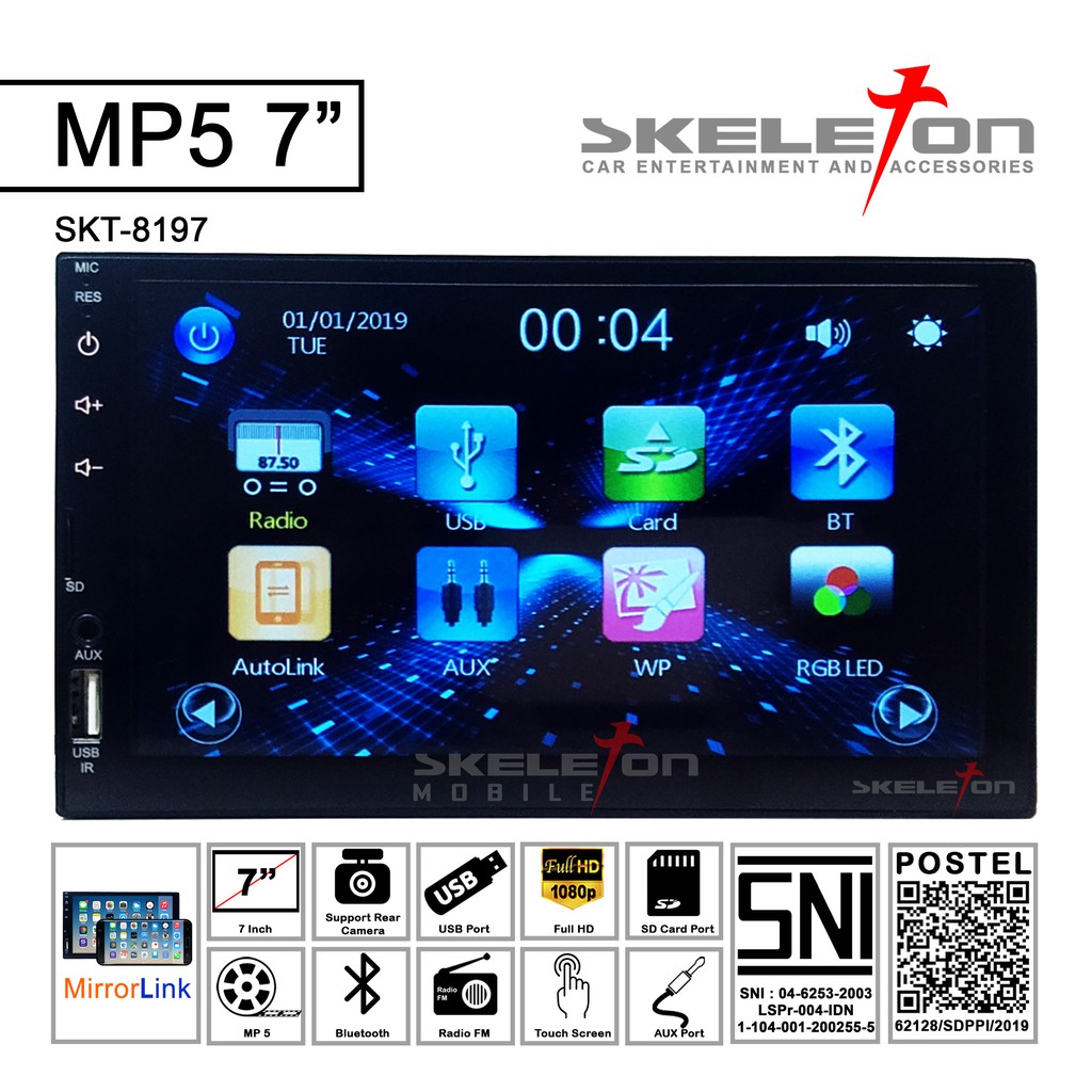 Head Unit Double DIN Skeleton SKT-8197 7" Inch MP5 Mirrorlink & Bluetooth