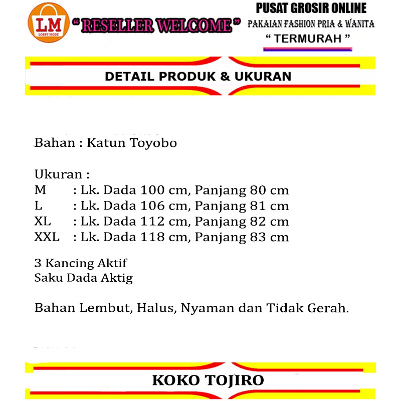 TERMURAH Baju Muslimin Koko Pria KOKO TOJIRO Bahan Toyobo Premium Berkualitas LMS 18844-18850