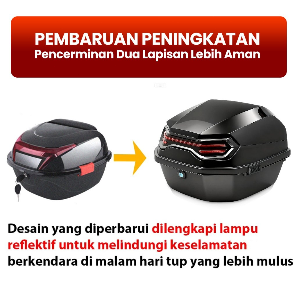 Pohac Ready stock Box Motor 35L box motor belakang ABS Muat 3 Helm motor box Cocok untuk Motor