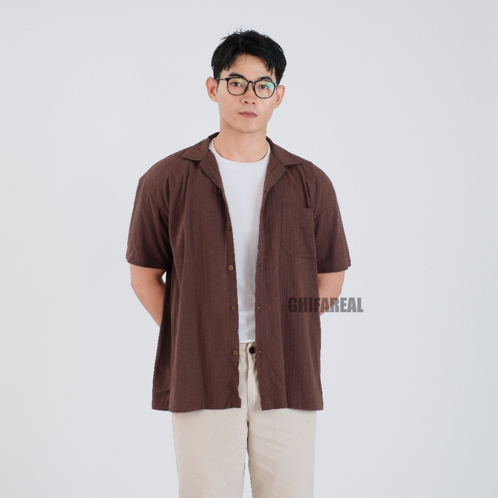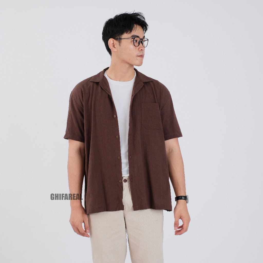 kemeja pria GHIFAREAL - Cuban Bowling Boxy Oversized Linen Shirt baju pria