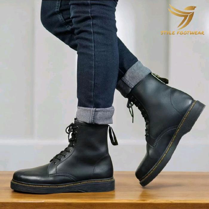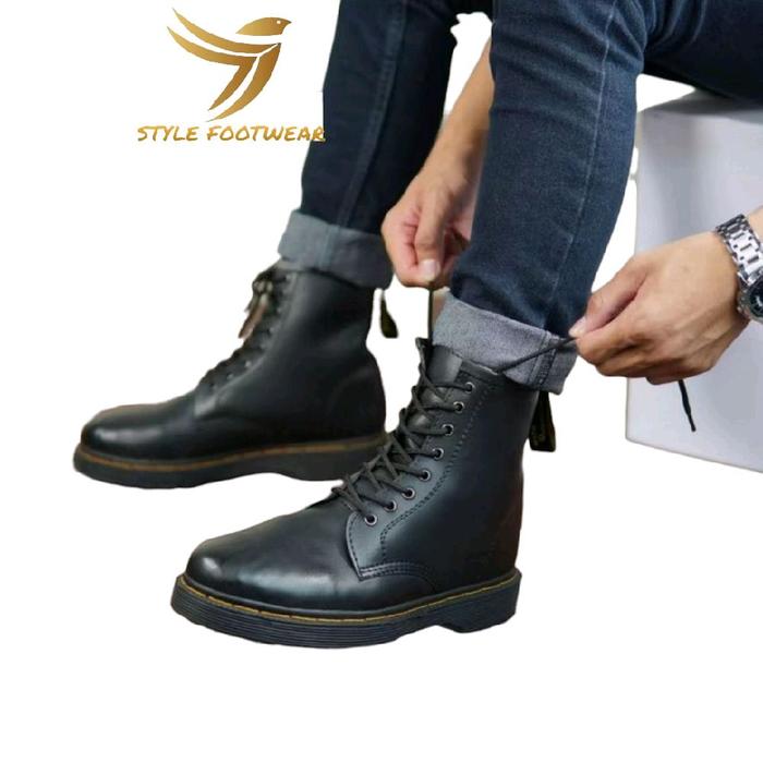 SEPATU HIGH SEPATU CLASSIC PRIA 8 H0LE TERLARIS HITAM BOOTS ORIGINAL STYLEFOOTWEAR ROUND TOE SQUARE TOE SHOES KERJA PER