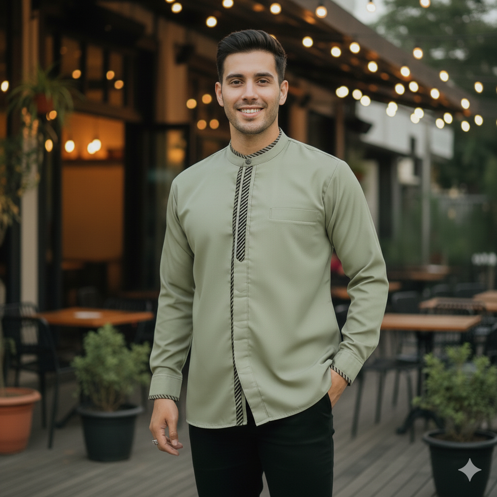 EL.SOF - TERBARU koko lengan panjang kombinasi bordir material cotton adem fashion muslim pria