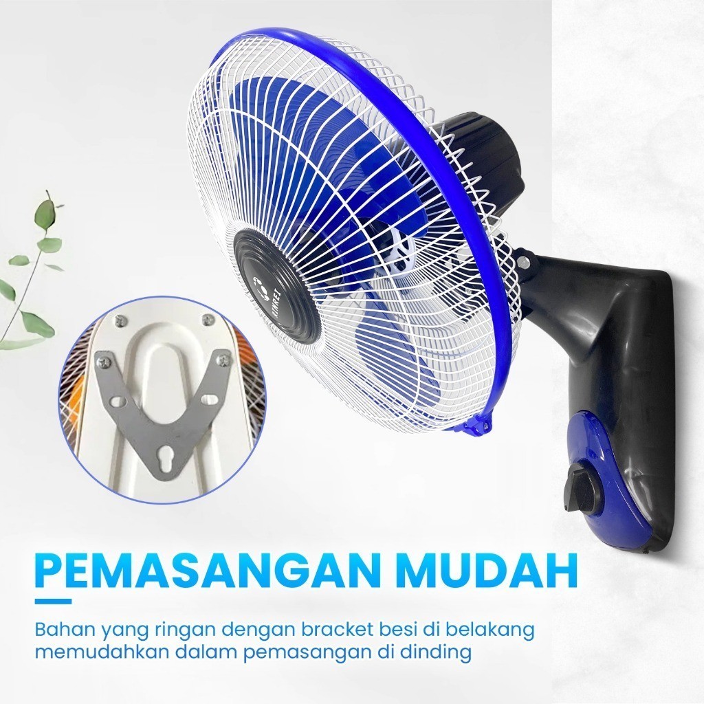Kipas Angin Dinding/Tembok 12 Inch 3 Speed - Baling Besar, Angin Kencang, 180° Swing, Tanpa Getar & Bising, 40 Watt Hemat Listrik
