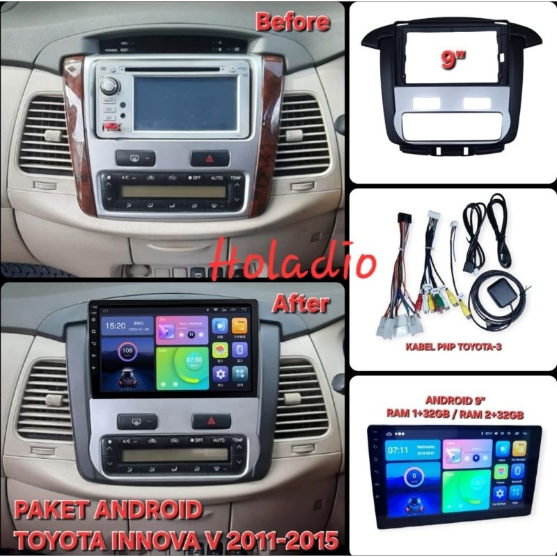 PAKET HEAD UNIT ANDROID 9 INCH RAM 2/ 64GB INNOVA LAMA TIPE E / TIPE G / TIPE V / INNOVA TERIMA PASANG