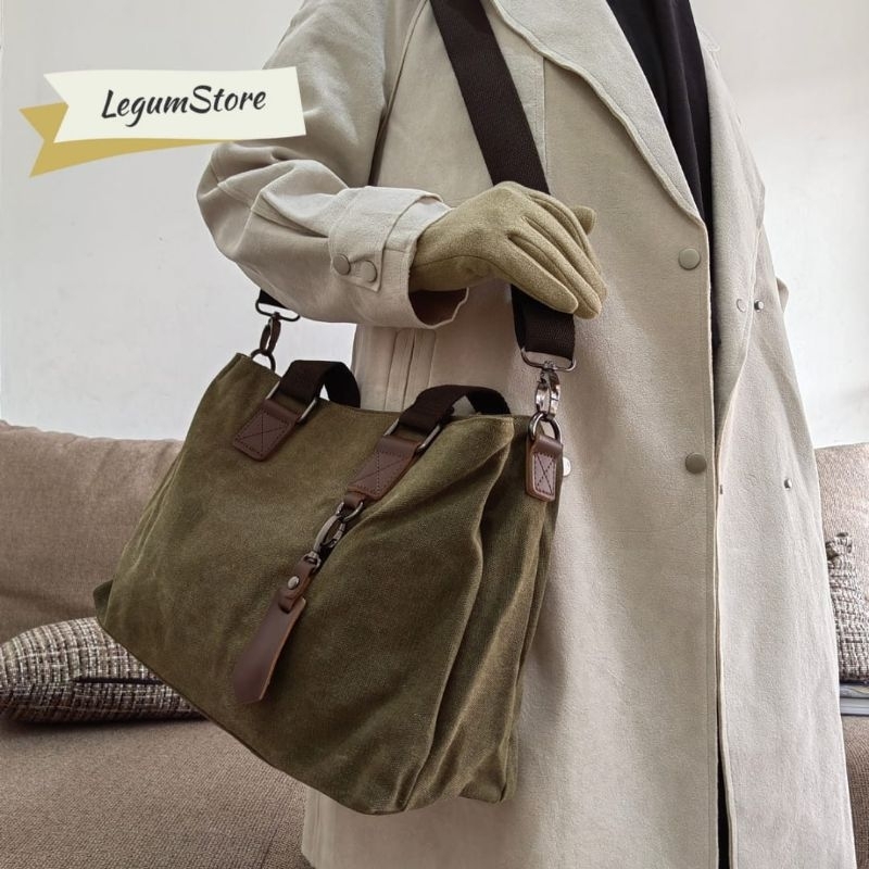 Tas Selempang Reuters santai kanvas. tas jinjing. Tote Bag Tiga Ruang Utama. pria. wanita. tas traveling Dua Fungsi