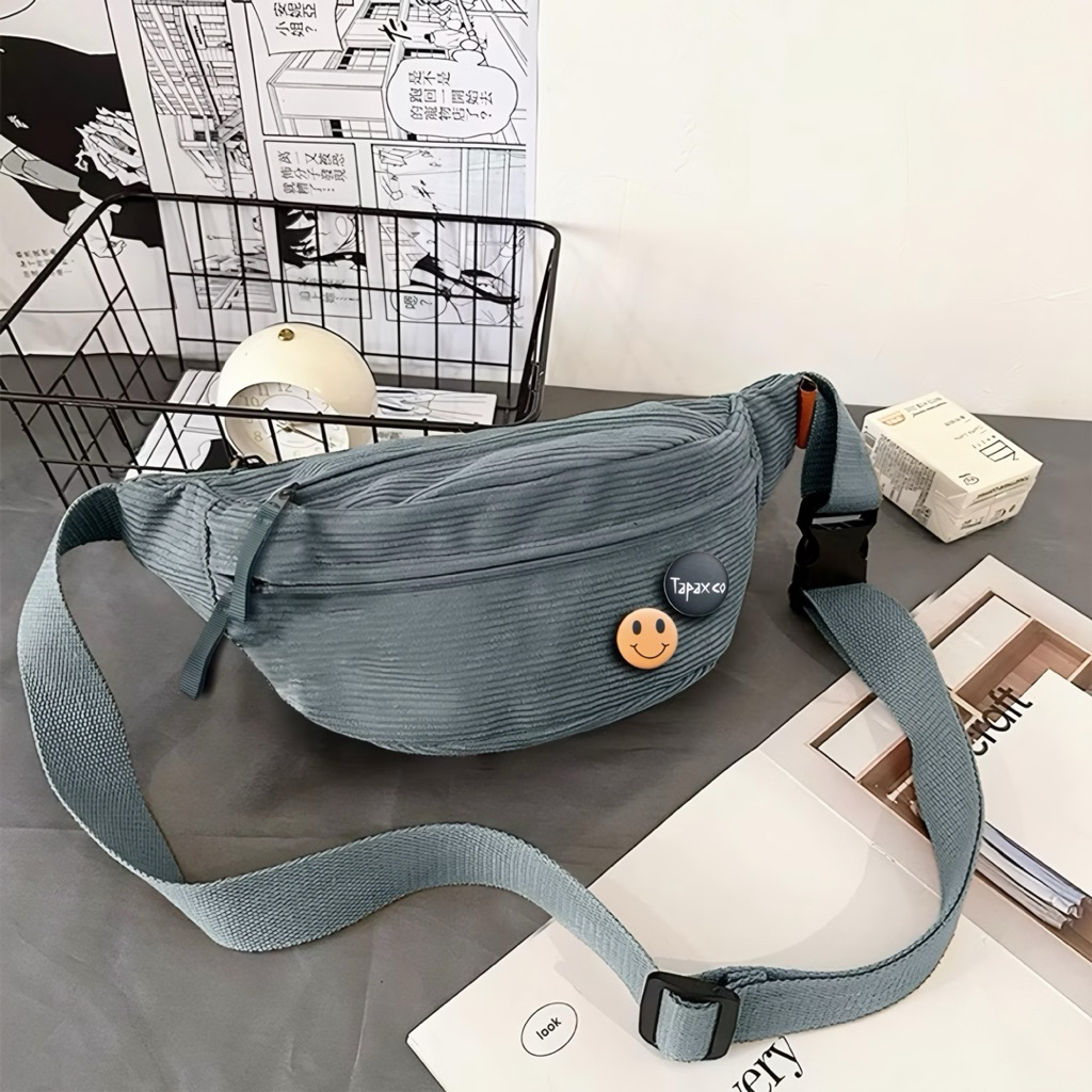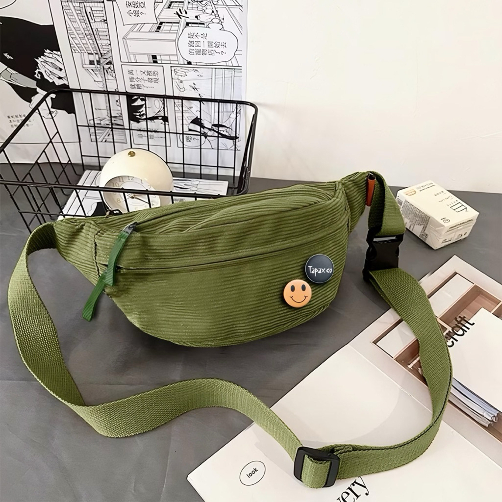 TAS WANITA TAPAXCO Tas Wanita Selempang Corduroy Floryn Tas Waitsbag Corduroy Unisex FREE PIN TAS WANITA SIMPLE ELEGAN