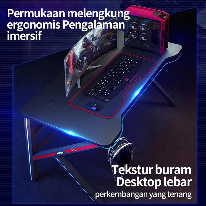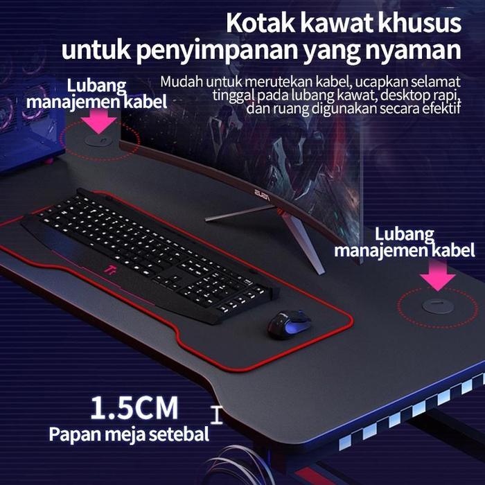 MEJA KOMPUTER MEJA GAMING MEJA KANTOR MEJA LAPTOP MEJA BELAJAR MEJA KANTOR SERBAGUNA MEJA KOMPUTER SHAPED SERAT KARBON 160CM FURNITURE - A-HITAM 100CM