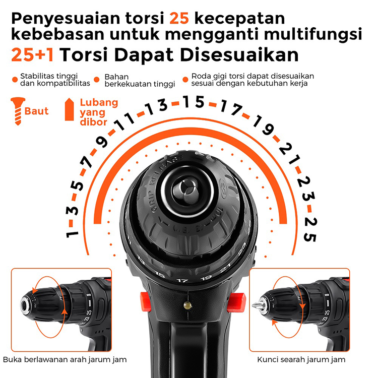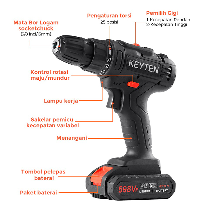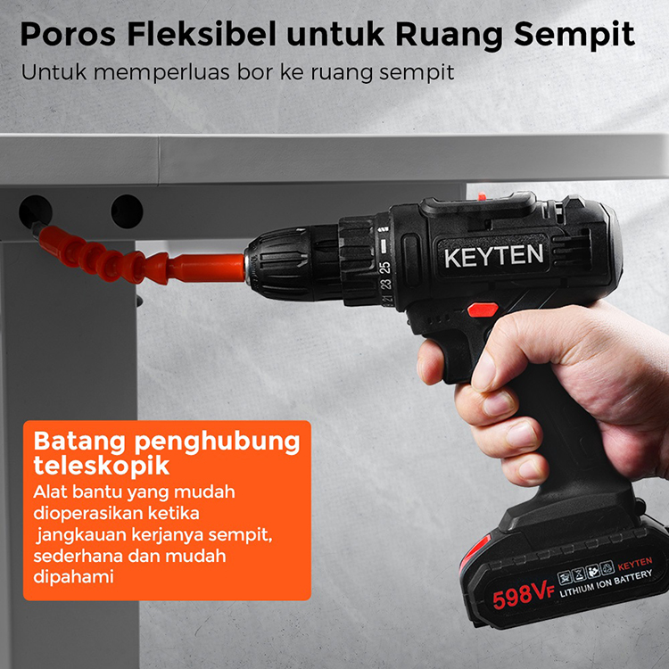 KEYTEN Bor Tanpa Kabel Set Baterai Obeng Listrik Perkakas Listrik Bor Tanpa Kabel Listrik