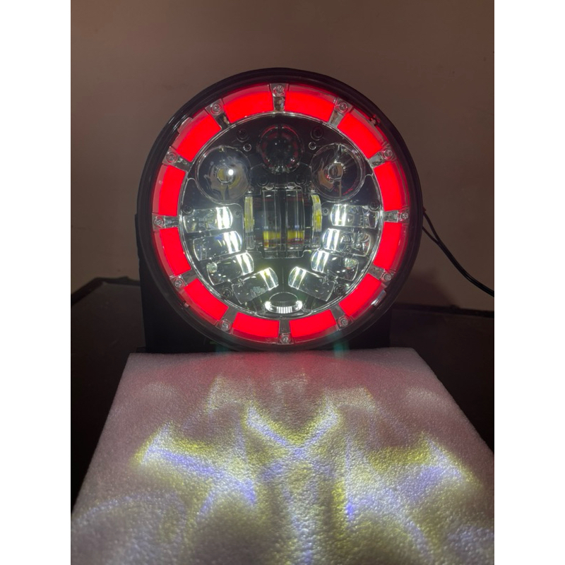 Daymaker official store Lampu depan 7 inch model bulat list putus putus nyala biru dan merah universal motor dan mobil
