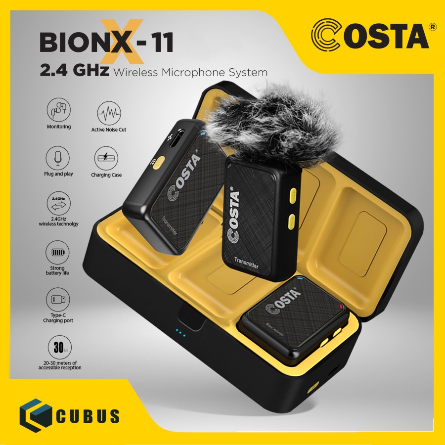COSTA BionX-11 Wireless Microphone 2.4GHz For Mobile Phone, DSLR, PC - BIONX-11 Plus