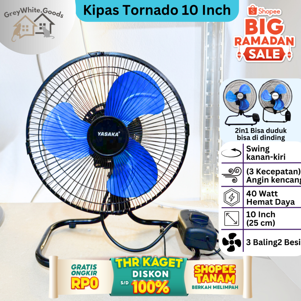 Kipas Angin Besi 2in1 Garansi Duduk Dinding Tornado 10 Inch Hemat Daya Angin Kencang