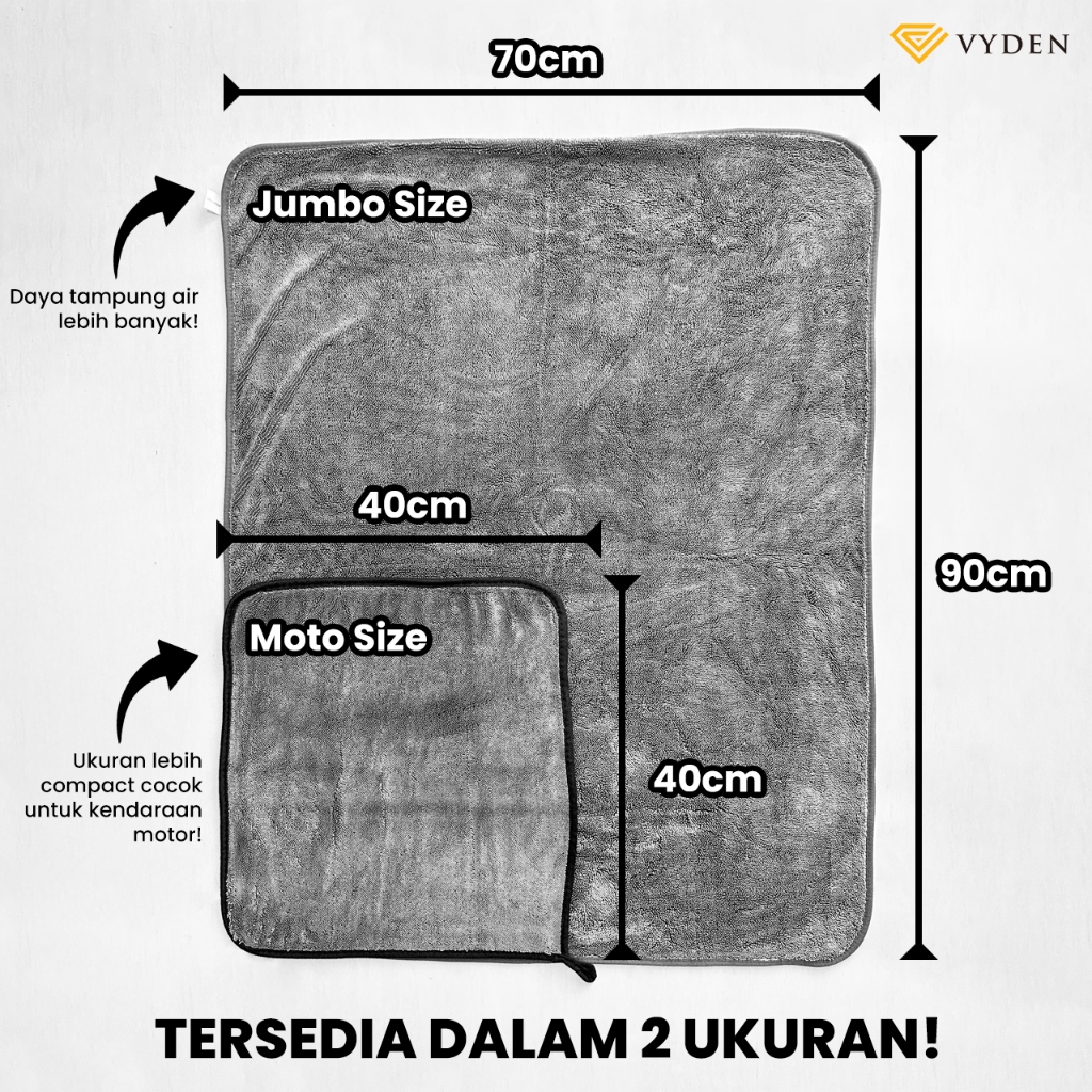 Lap Pengering Cuci Mobil VYDEN Drying Towel Twisted Loop Premium Korean Microfiber 650GSM Water Magnet Killer Handuk