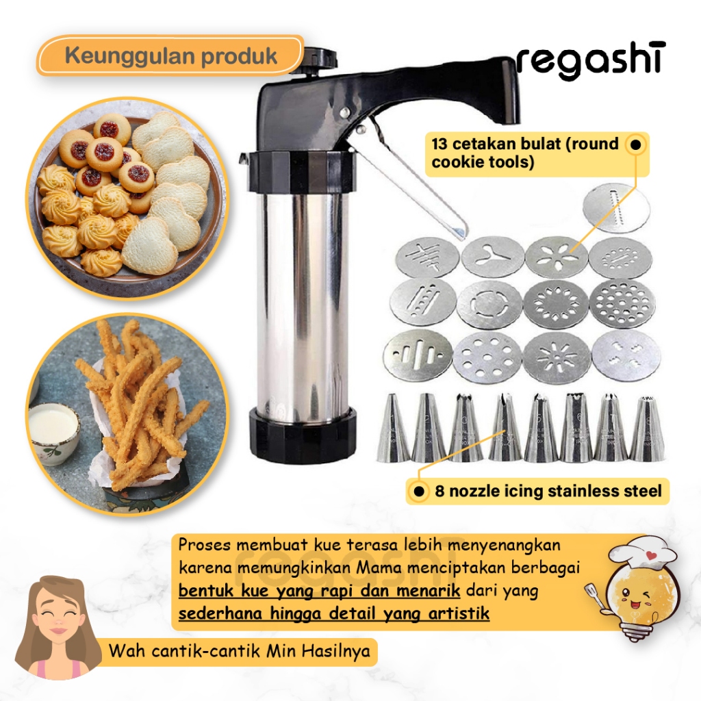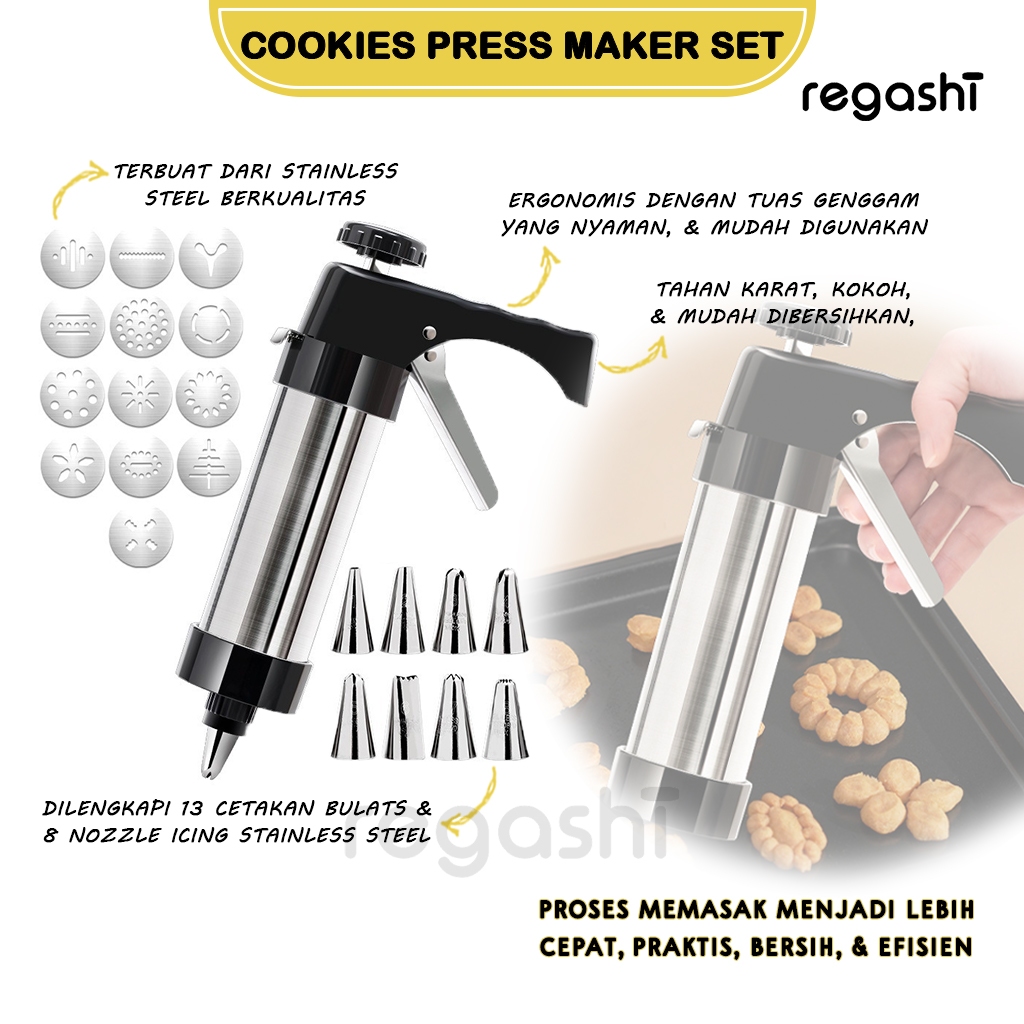 Cookies Press Maker | Cetakan Kue Kering Serbaguna | Alat Dekorasi Kue Stainless Steel | Pencetak Kue Natal Imlek Lebara