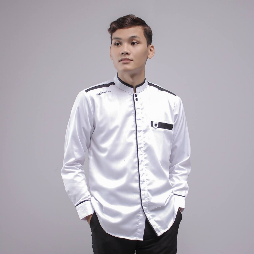 Baju Koko Pria Elrumi Lengan Panjang Motif Yisunsin Warna Putih