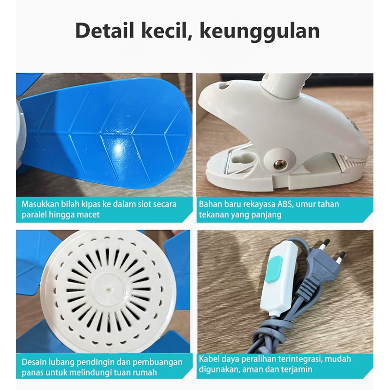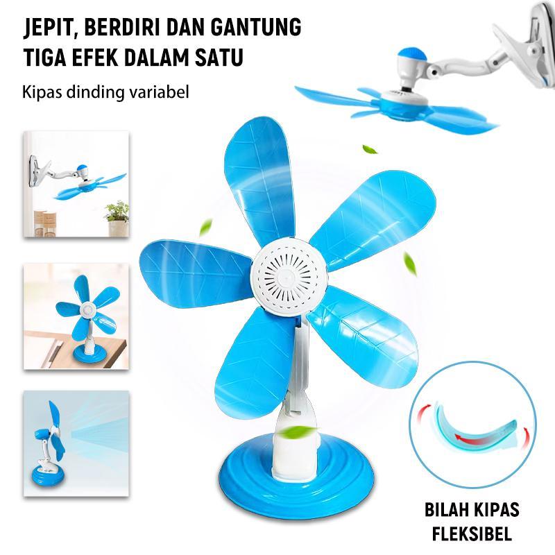 YEEXI Kipas Angin Jepit 3 IN 1/Kipas Angin Meja/Dinding fan/langit-langit Mini Fan 5 baling