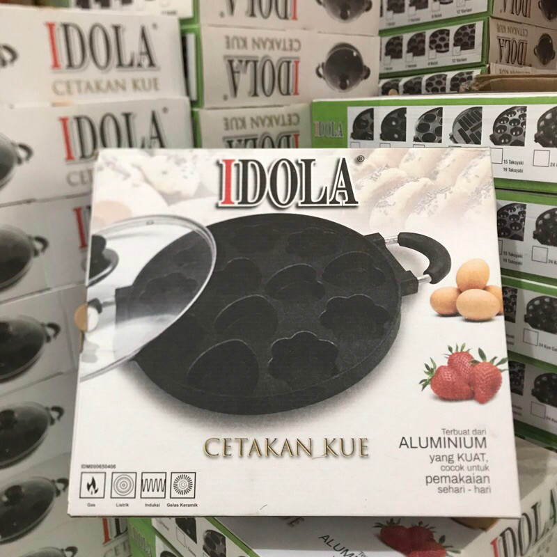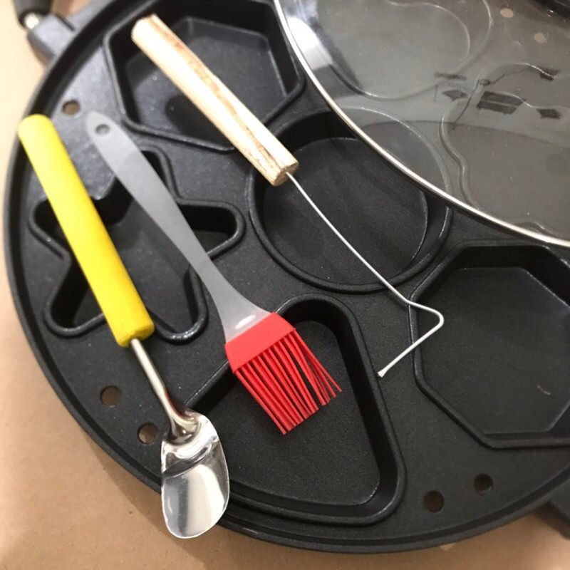 Cetakan Kue Cubit 7 Karakter Lubang Happy Call Bahan Teflon Anti Lengket Tutup Kaca Cake Pan