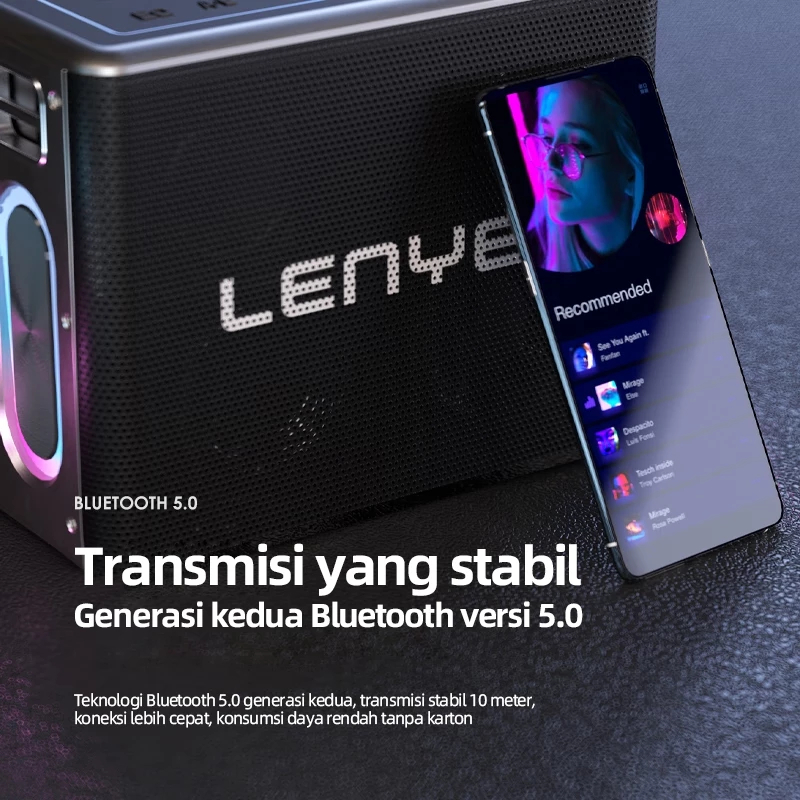 LENYES S861 150W KTV RGB LED Light Wireless Speaker + Microphone Karaoke Bluetooth 5.0 Portable High Power