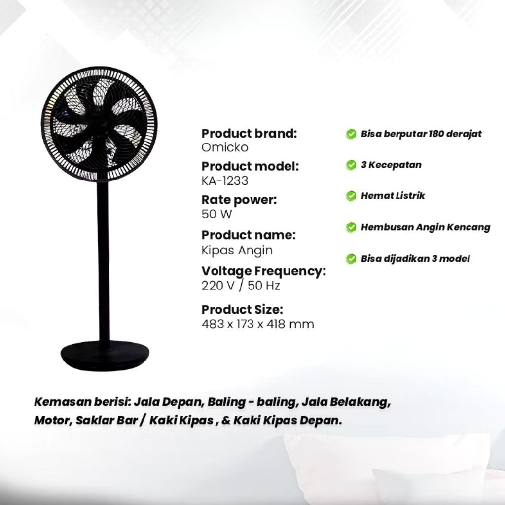Kipas Angin 3-in-1 12 Inch 3 Kecepatan + Remote | Bisa Duduk, Diam, atau Ditempelkan di Dinding | Hemat Listrik 65W | Bahan ABS Tahan Lama | Garansi 1 Tahun