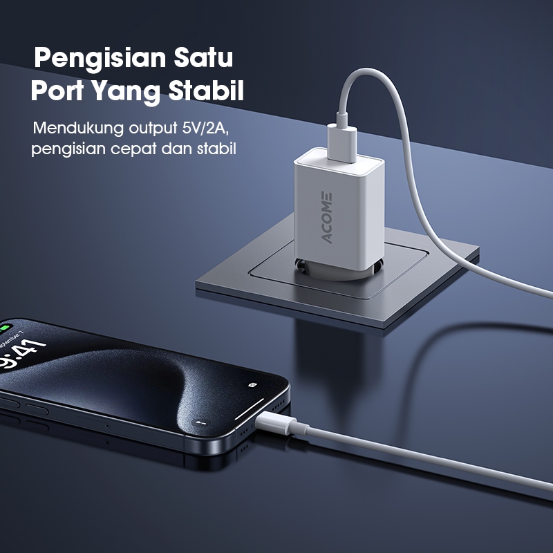 [Star] ACOME Special Bundling Charger AC14 Single Port USB Fast Charging 2A Original + ACOME Kabel Data Seri AS-100S New