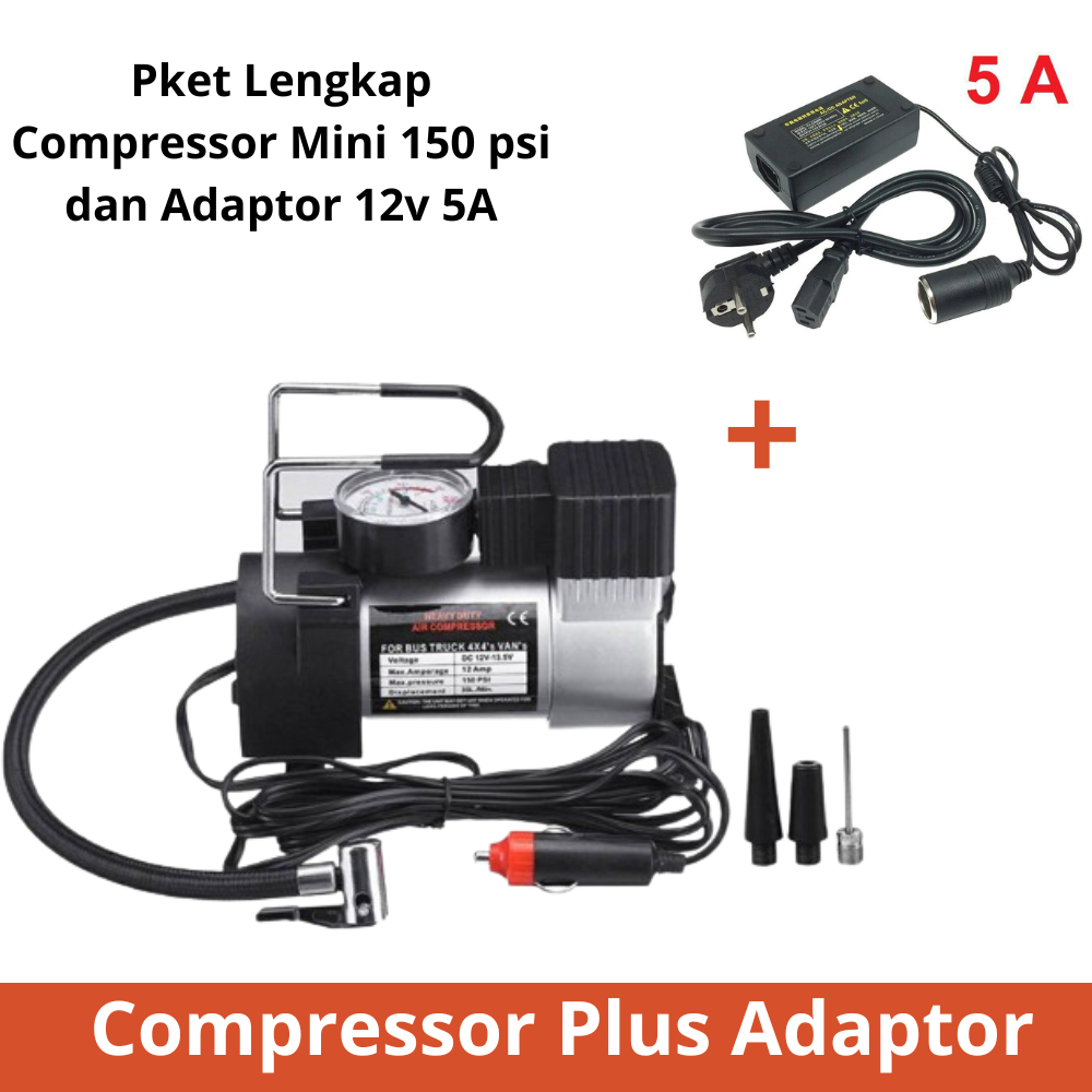 Kompresor Mini cet heavy duty150 psi dan Adaptor 12v 5A - Pompa Ban Air Compressor DC 12V Kabel 2.5 Meter + adaptor - co