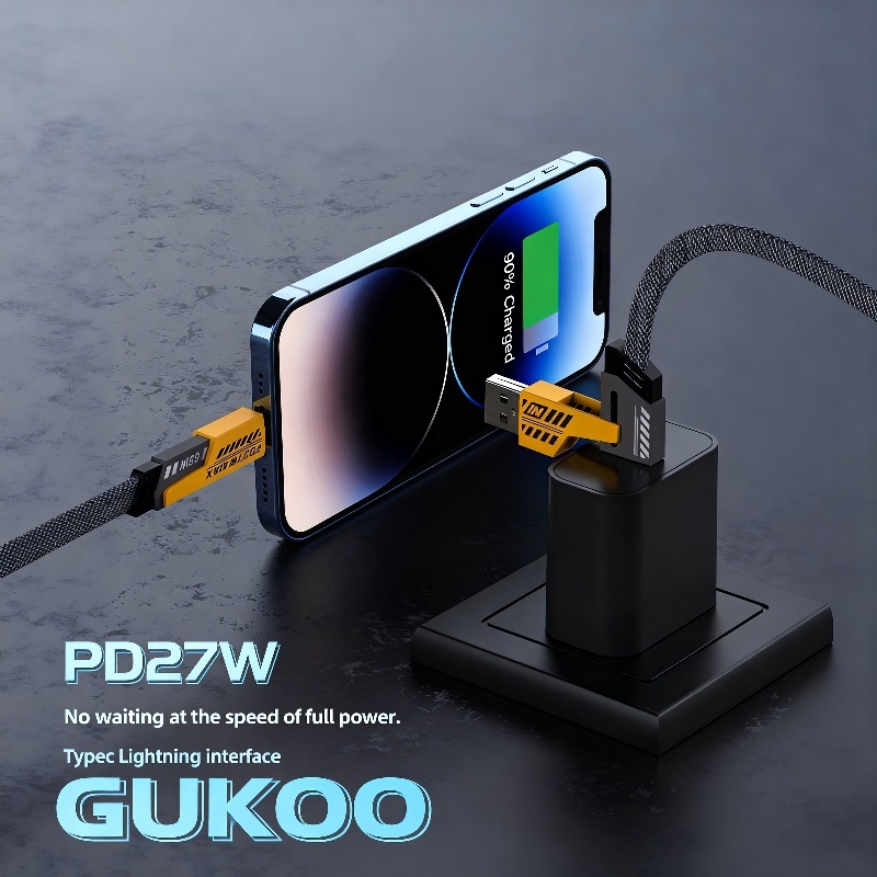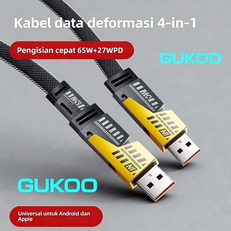 [Star] GUKOO Kabel Data 4-in-1 Fast Charge 65W PD - USB to Type C/Lightning Tahan Lama, Cocok untuk iPhone/Android/Lapto