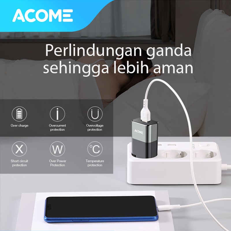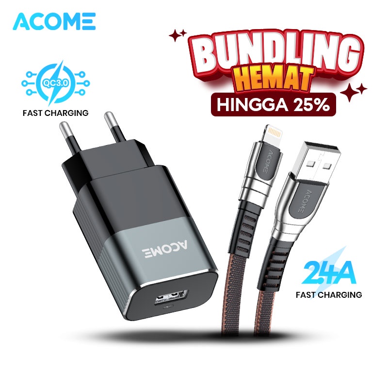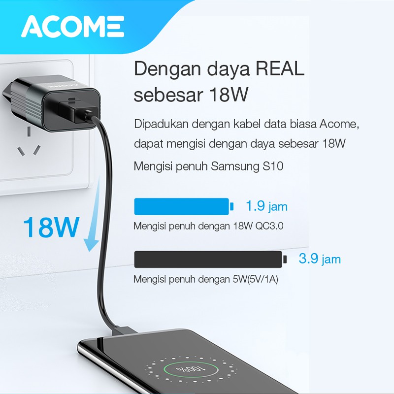[Star] ACOME Charger QC3.0 AiC Fast Charging (AC01) Free Kabel Data Micro USB iPhone Type-C (AK Series) Ori