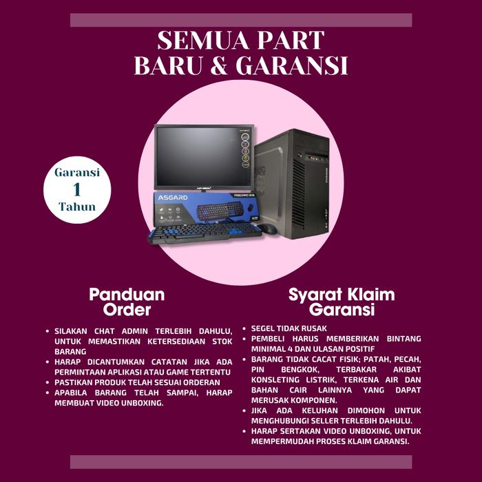 PC FULLSET RAKITAN KOMPUTER OFFICE CORE I3-RAM 8GB | SSD 256GB | HDD 500 GB | MONITOR 19 INCH+KABEL +KEYBOARD WHITE/BLACK SUDAH TERINSTAL WINDOWS - PAKET 01, EXO