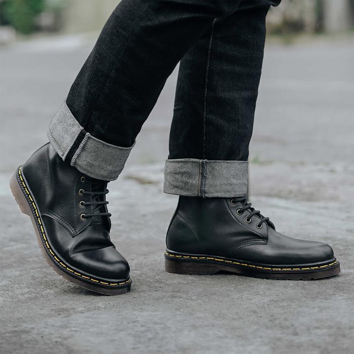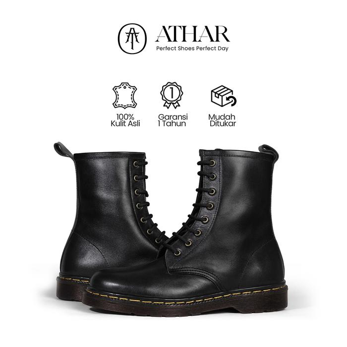 ATHAR HAMORII SEPATU BOOTS PIRA DOCMART 8 H0LE KULIT ASLI - HITAM, 38
