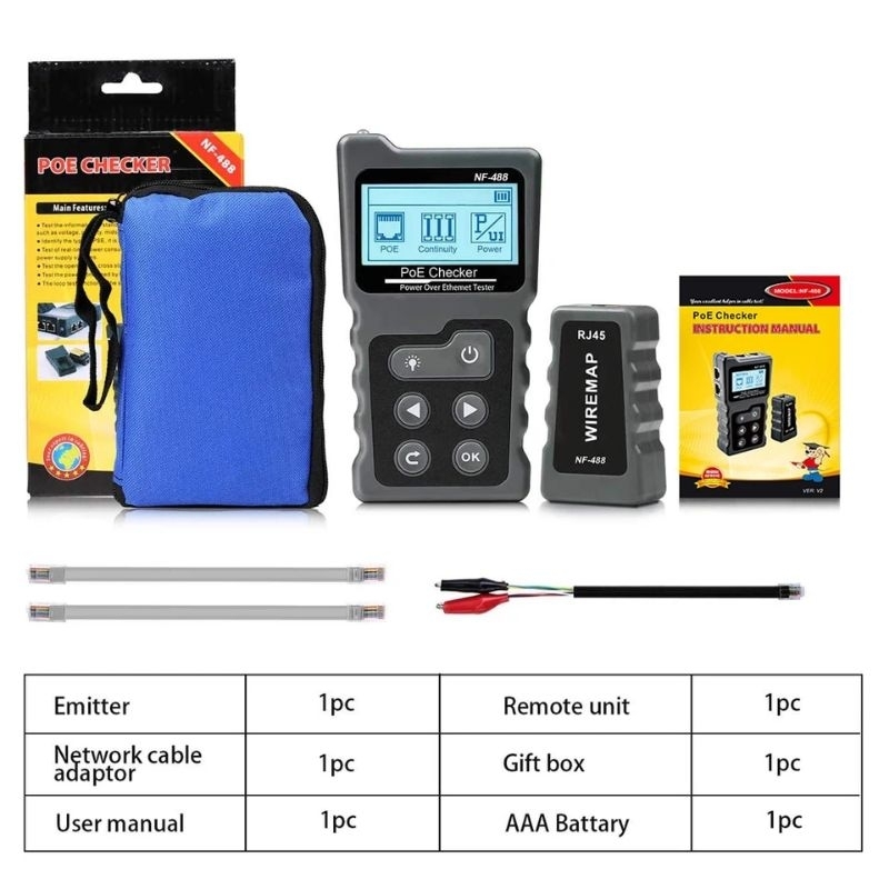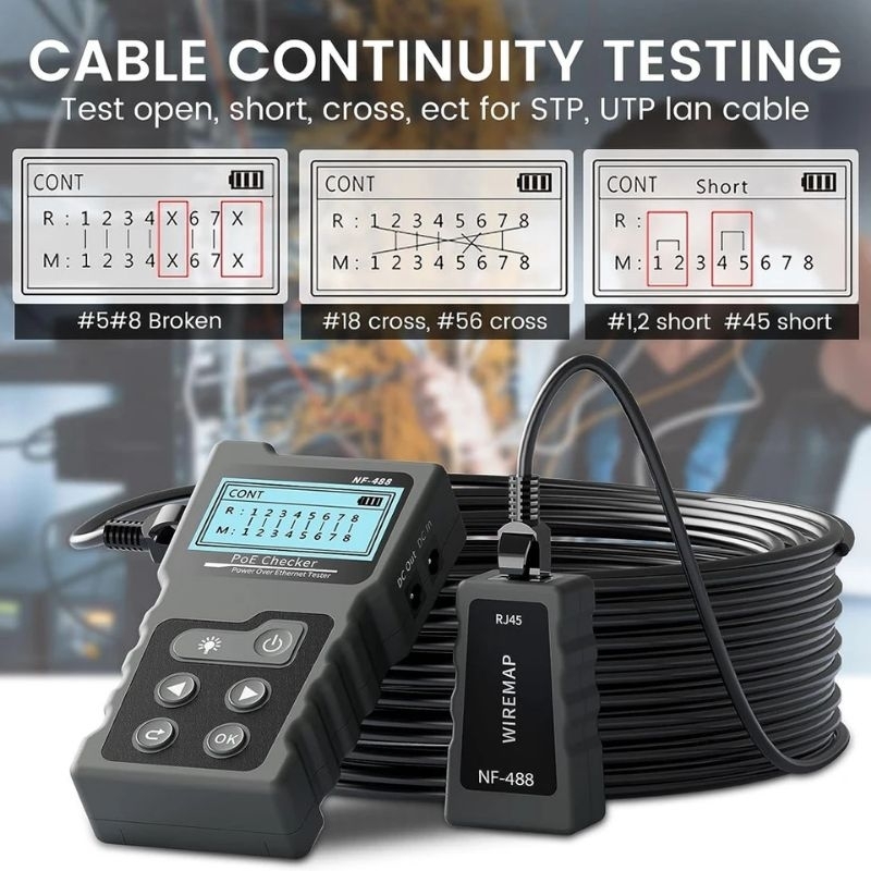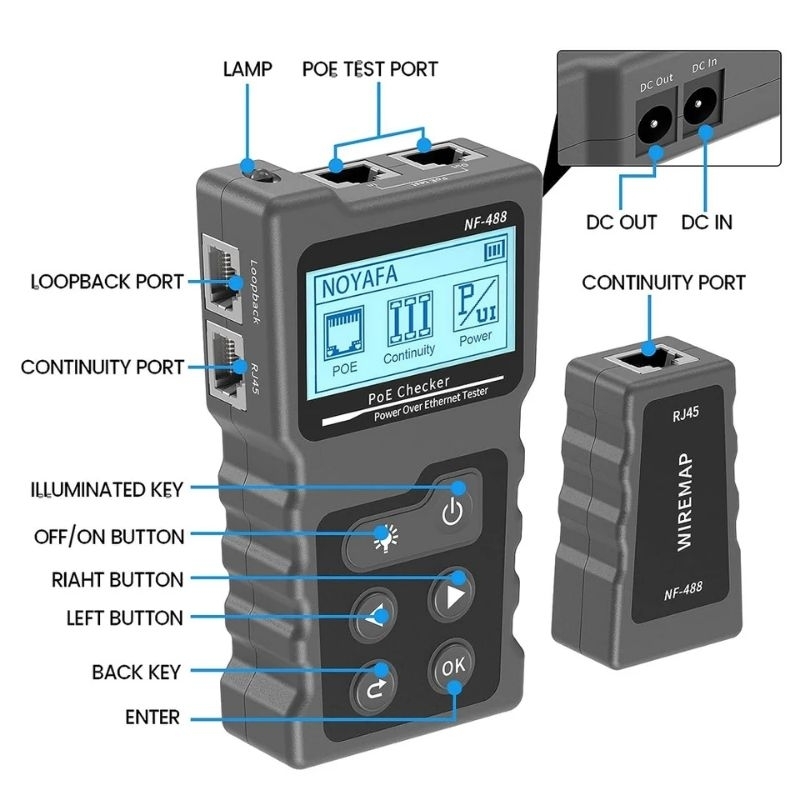 Noyafa NF-488 LCD Network Cable Tester PoE Checker Wire Tracker Inline PoE Voltage Current Tester with Cable Tester