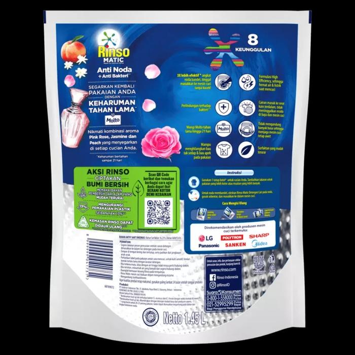 RINSO MATIC FRONT LOAD LIQUID POUCH 1.45L - K.BARU 1.45 L