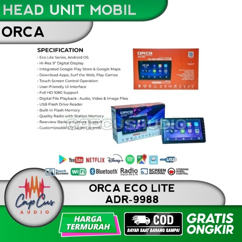 Head Unit Android Mobil Orca Eco Lite ADR 9988 / Head Unit Android Orca ADR-9988 Eco Lite Series