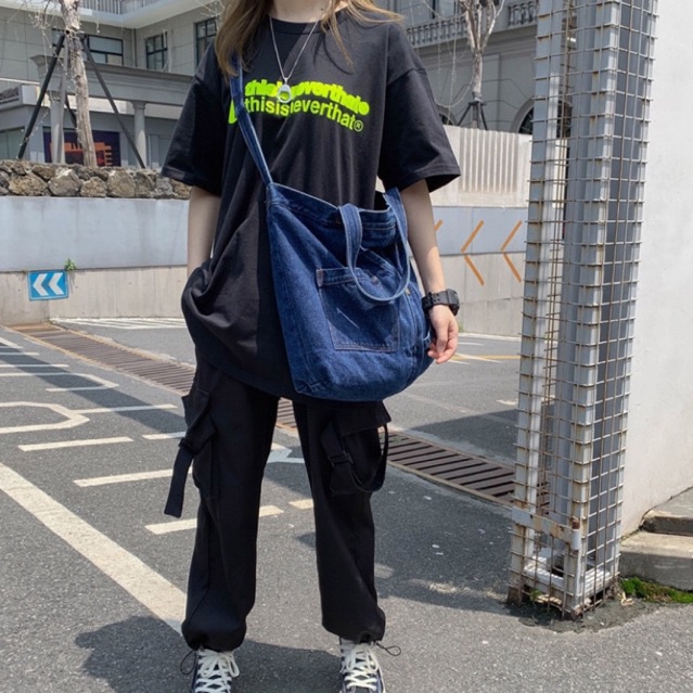 Little Maple - Premium Jeans Big Tote Bag / Korean Shoulder Bag / Tas Jeans Jumbo ToteBag Korea
